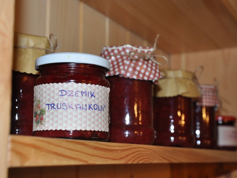 Dojrzewające owoce dają nam masę radości - uwielbiamy robić z nich domowe przetwory, takie, jak dżemy, soki oraz nalewki. Większość owoców posiadamy z własnych drzew i krzewów, których nigdy niczym nie pryskamy. Owoce są w stu procentach naturalne i ekologiczne. Dodatkowo mieszkający u nas goście również mogą z tych owoców korzystać! Oczywiście całkowicie darmowo, każdy może sobie zrywać czereśnie, maliny, czy też porzeczki. Jednak największą frajdę dzieciaki mają zrywając poziomki :)