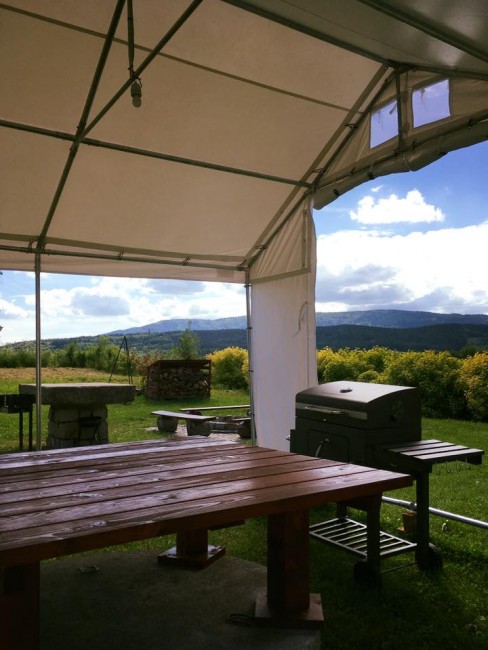 Specjalnie dla naszych gości powiększyliśmy miejsce do posiedzenia na powietrzu. Początkowo w planach była rozbudowa naszej altany, jednak na rzecz innej, większej inwestycji, tymczasowo postawiliśmy i umocniliśmy przy altanie duży, imprezowy namiot. Pojawił się też nowy, dużo większy grill aby ułatwić i umilić wieczorne integracje większym grupom. Teraz żadna pogoda nam nie straszna :)