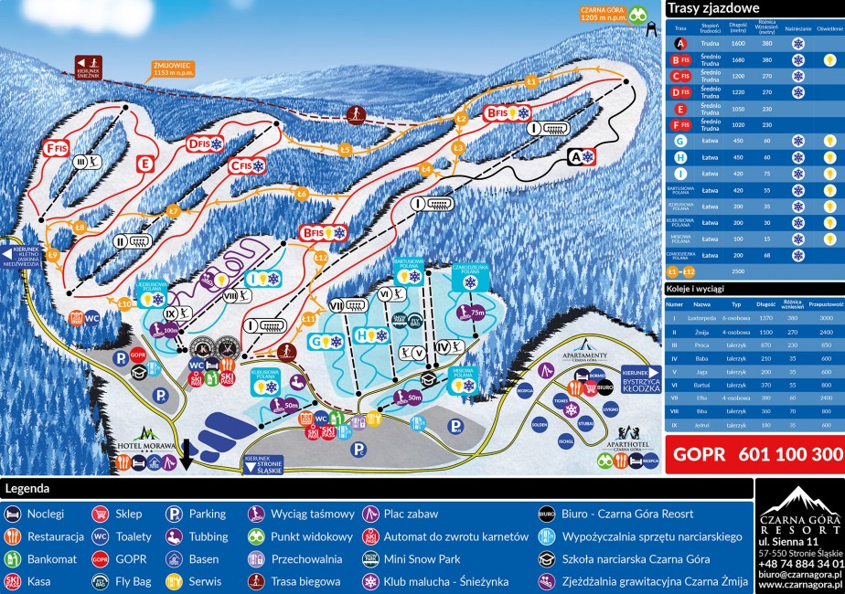Czarna Góra to kurort narciarski oferujący 13 tras zjazdowych z czego aż 4 posiadają certyfikat FIS. Trasy są zróżnicowane pod względem poziomu trudności dlatego każdy znajdzie coś dla siebie.